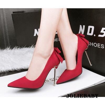 【3日以内出荷】レディース美脚 パンプス ハイヒール ピンヒール リボン おしゃれ カジュアル 結婚式 二次会 お呼ばれ 4色