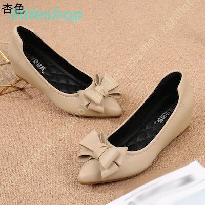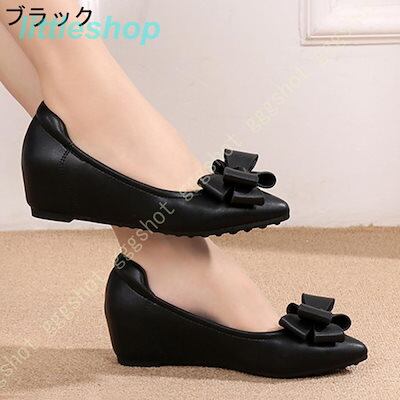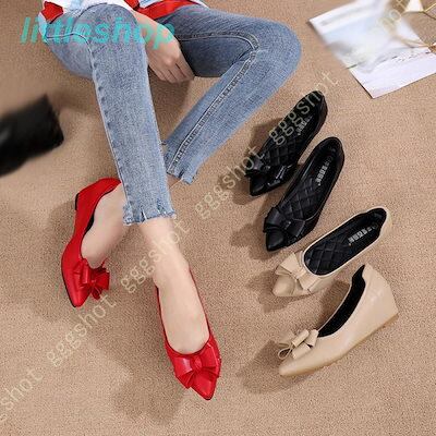 【3日以内出荷】美脚 厚底 コンフォートシューズ レディース 靴 パンプス 痛くない 歩きやすい ヒール リボン ウェッジソール 仕事 プラットフォーム ローヒール ぺたんこ