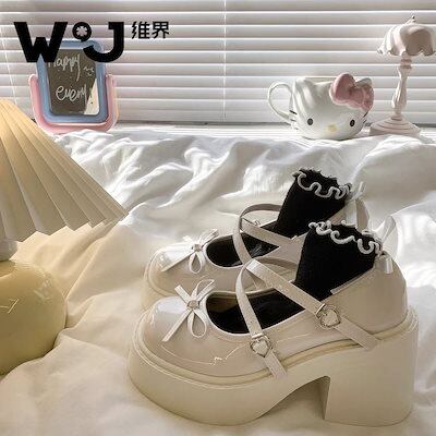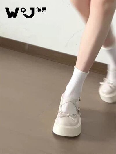 まるあたま あちこち 厚底 小さな靴の女 2025新型 リボン本 浅口 シングルシューズ