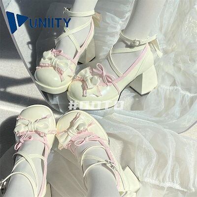 ハイヒール lolita 厚底 防水 甘い かわいい リボン本 くつ女