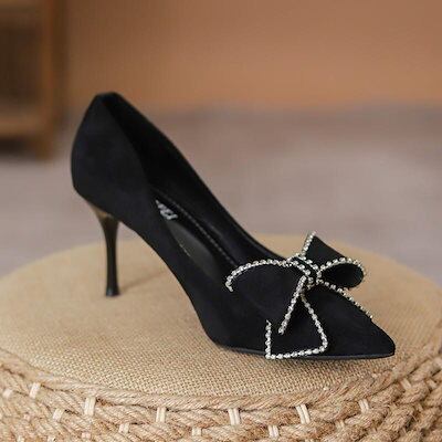 パンプスまた来年 ファッションレディース パンプス ローヒール 痛くない 細ヒールハイヒール 本革新リボンスパイク 黒 ソフトソールワークシューズ レディース 走れる 美脚 脚やせ