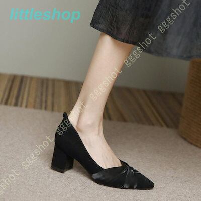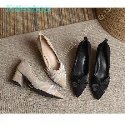 【3月新品】ウェディングシューズ ハイヒール パンプス パーティーシューズ とんがりトゥ レディース 太ヒール リボン スエード 5cm 白 結婚式 パーティ 二次会