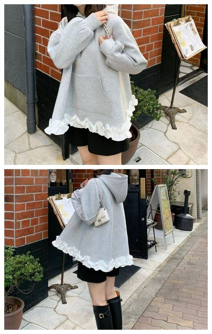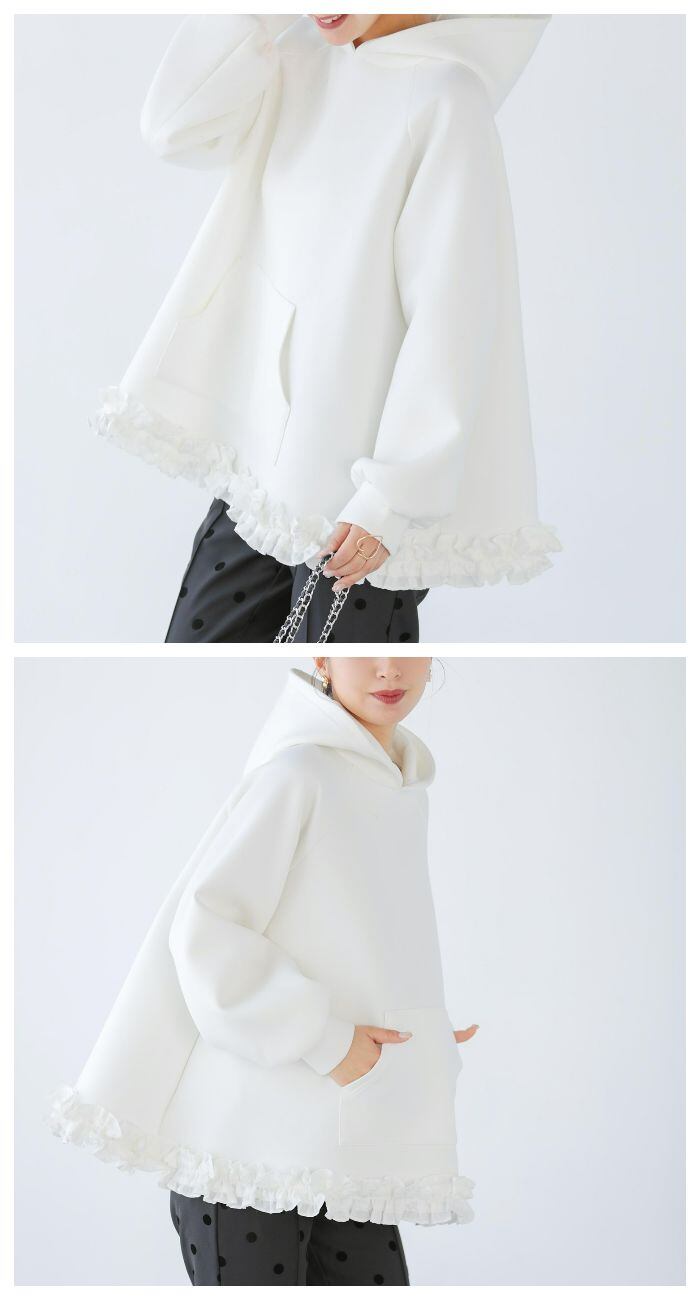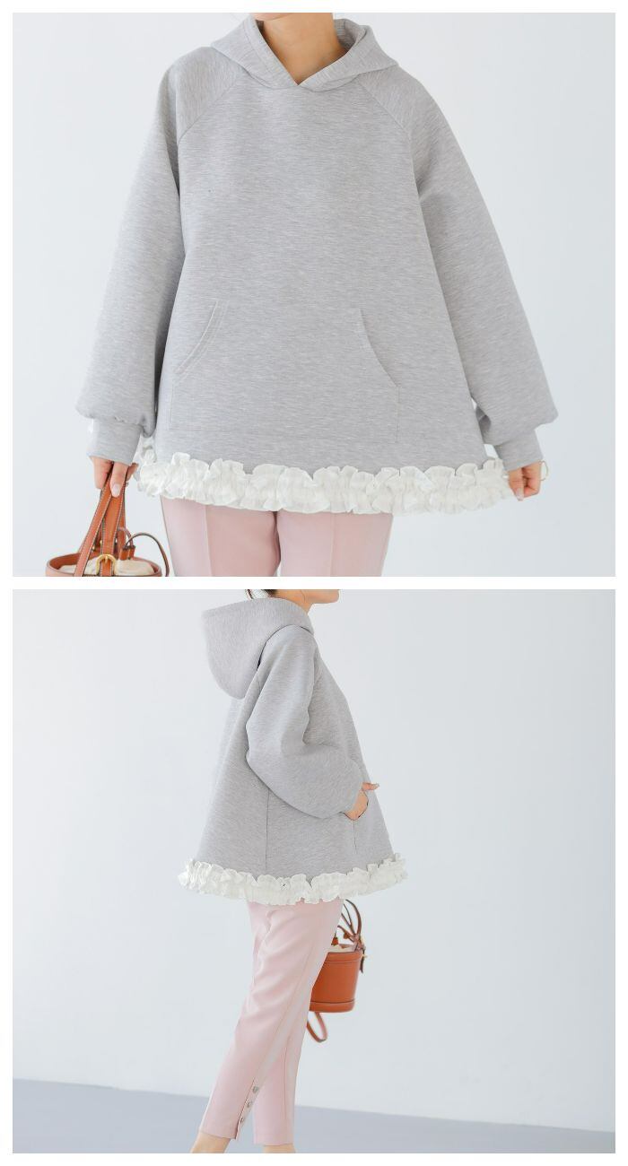 シンプルなスウェットに裾フレアでトレンドをプラス♪