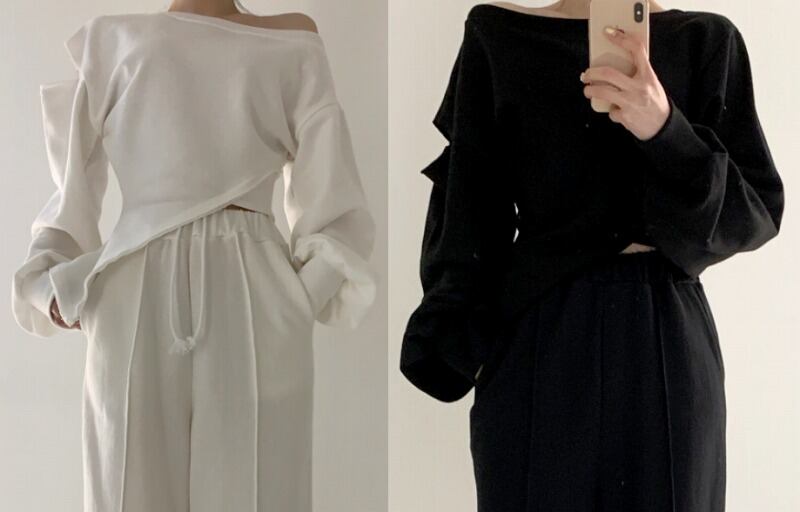 全2色 スウェット トレーナー アシンメトリー 長袖 切り替え 体型カバー 着痩せ カジュアル