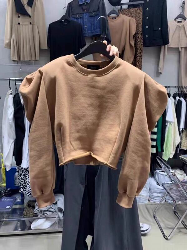 スウェット トレーナー ボリューム袖 切り替え 体型カバー 着痩せ シンプル カジュアル