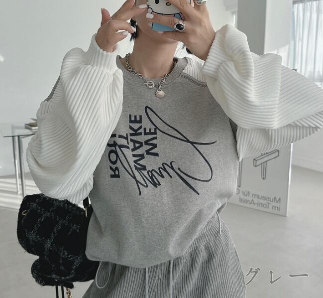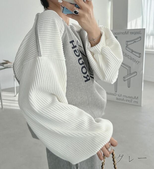 全3色 スウェット トレーナー 長袖 切り替え バイカラー 体型カバー 着痩せ カジュアル