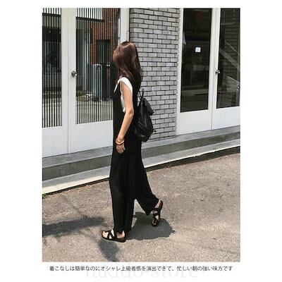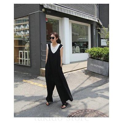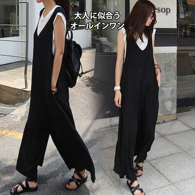 サロペットパンツ レディース オールインワン オーバーオール ワイドパンツ ガウチョパンツ 綿麻パン