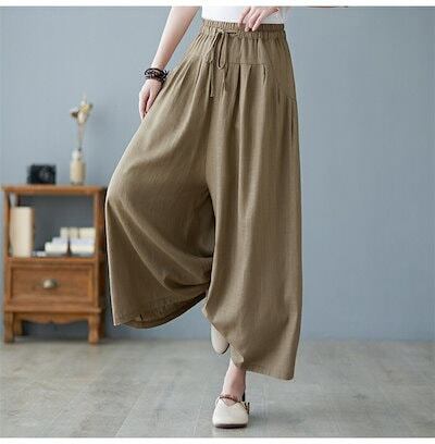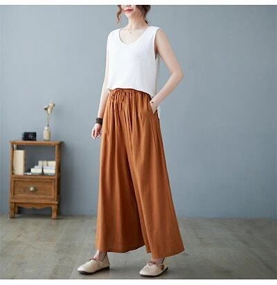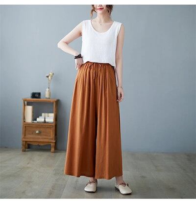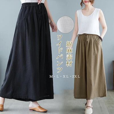 綿麻パンツ レディース 夏 ワイドパンツ パンツ リネン ガウチョパンツ 大きいサイズ ゆったり ワイド スカーチョ 春夏 きれいめ マキシ丈 ワイドパンツ ロング 着痩せ 美脚 スカンツ 体型カバー