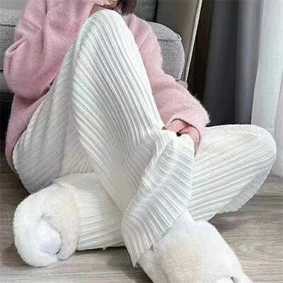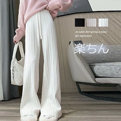ワイドパンツ 秋冬 ガウチョパンツ パンツ レディース ロングパンツ フレアパンツ ニット パンツ ニットパンツ ロング丈 秋物 ウェストゴム 体型カバー リブニット 長ズボン スカンツ ガウチョ マ