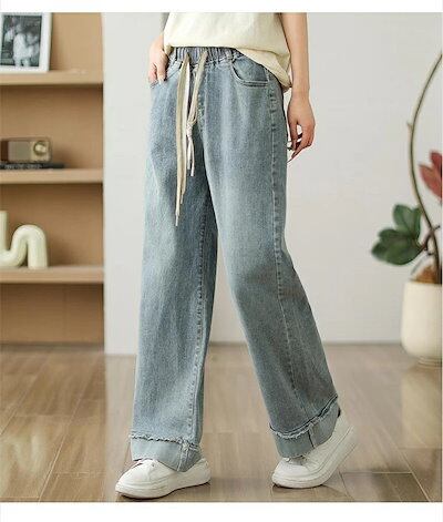 ワイドパンツ デニムパンツ レディース ワイド ロングパンツ 長ズボン デニム ボトムス パンツ ロング丈 ガウチョパンツ 大きいサイズ ロングパンツ ガウチョ ハイウエスト 体型カバー 着痩せ 落ち