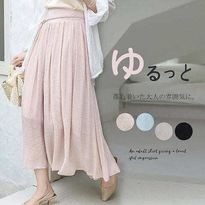ワイドパンツ ロングパンツ レディース 長ズボン ロング丈 ガウチョパンツ 綿麻風 バギー キュロット ガウチョ ボトムス ゆったり 体型カバー リボン付き ハイウエスト 無地 リラックス 穿きやすい
