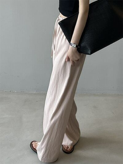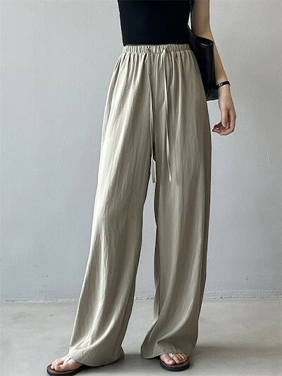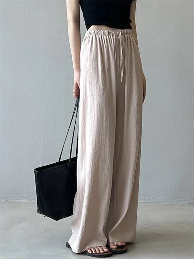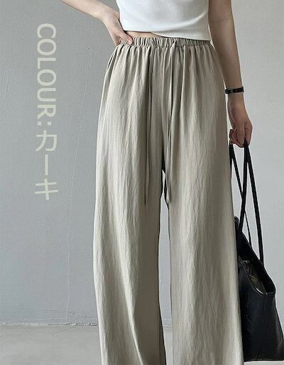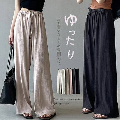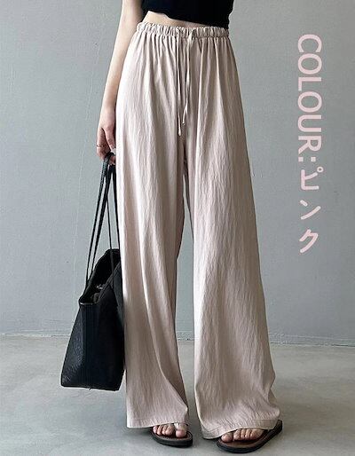 ワイドパンツ ガウチョパンツ パンツ レディース 夏 バギーパンツ 涼感 ウエストゴム ゆったり フレアパンツ ウエストリボン 夏 ロングパンツ 美脚 薄手 ゴム ロング丈パンツ ひんやり 細見え 着