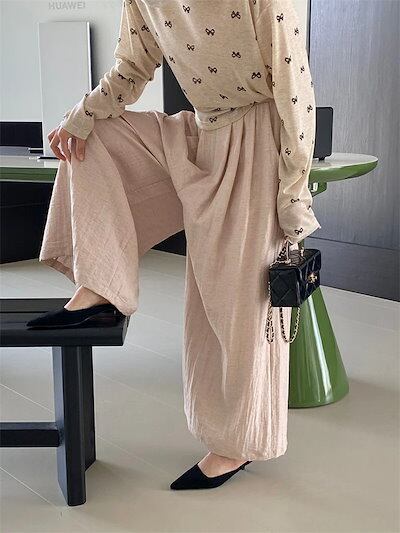 ワイドパンツ 夏 レディース ロングパンツ パンツ ボトムス ワイド フレアパンツ リネンパンツ イージーパンツ ガウチョパンツ ウェストゴム ハイウェスト 春夏 ゆったり カジュアル キレイめ リラ