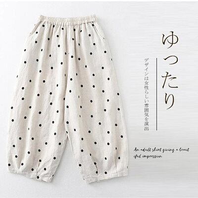 バルーンパンツ ワイドパンツ レディース パンツ ガウチョパンツ ドット柄 水玉 体型カバー パンツ ボトムス バルーンパンツ ガウチョ 9分丈 ウエストゴム ハイウエスト ゆったり 着痩せ 体型カバ