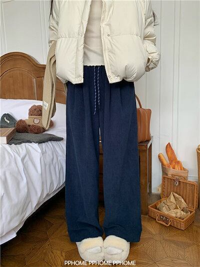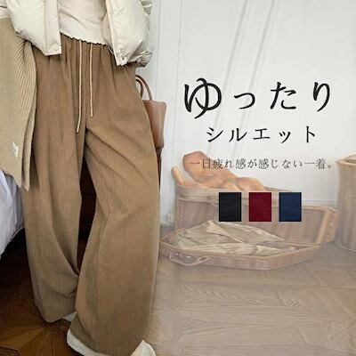 ワイドパンツ ガウチョパンツ パンツ レディース 秋冬 ロング コーデュロイ ボトムス ロングパンツ コーデュロイパンツ ストレートパンツ ズボン 長ズボン ゴムウエスト ボトムス 体型カバー リラッ