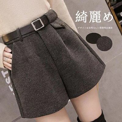 パンツ ウール調 ショートパンツ レディース 秋冬 ハーフパンツ パンツ キュロット 五分丈 ボトムス ガウチョパンツ 大きいサイズ ズボン ワイド aライン ゴム ハイウエスト 無地 厚手 ゆったり