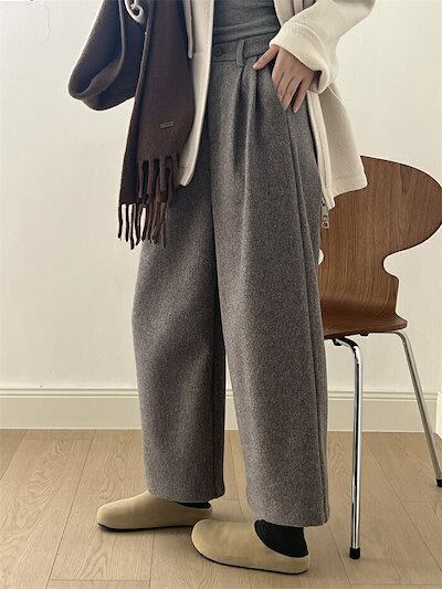 ワイドパンツ ウール調 レディース 秋冬 ラシャ ゆったり パンツ ロングパンツ 秋冬 ラシャパンツ ガウチョパンツ ロング丈 大きいサイズ 九分丈 ガウチョ スラックス 九分丈パンツ 長ズボン 無地