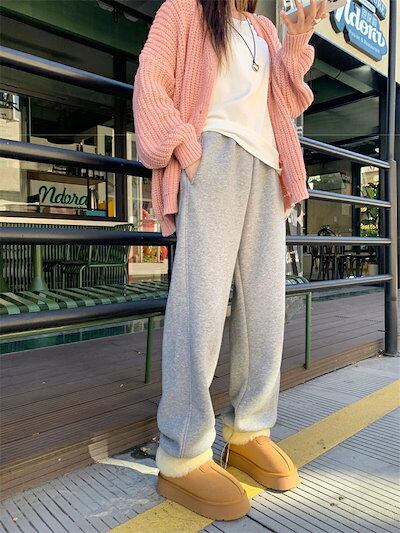 裏起毛 ストレートパンツ ワイドパンツ ガウチョパンツ パンツ レディース 冬 ワイド スウェット ウエストゴム ゆったり 体型カバー ジャージ 厚手 裏起毛パンツ 暖かい スウェットパンツ 裏ボア