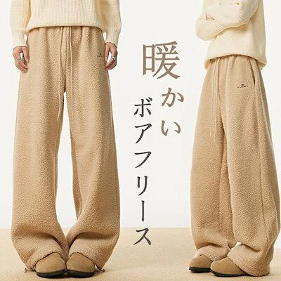 ワイドパンツ ガウチョパンツ パンツ レディース ボアフリース 秋冬 カーブパンツ スウェット 体型カバー ボトムス パンツ ワイド 長ズボン ロングパンツ ウエストゴム ボアパンツ ゆったり ゆった