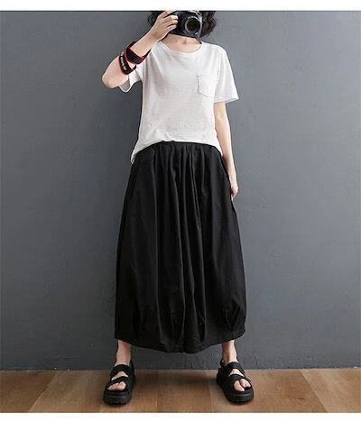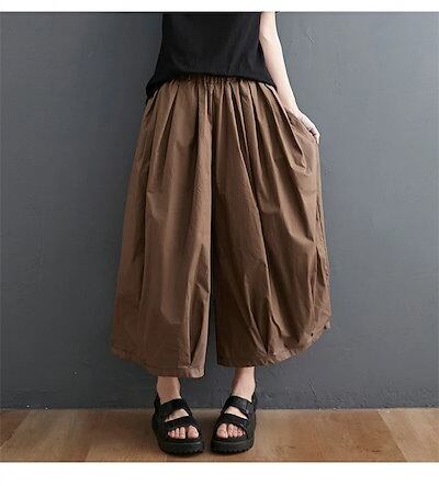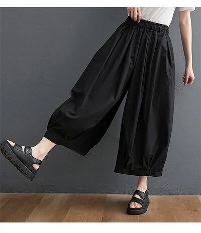 バルーンパンツ パンツ レディース サルエルパンツ ロング丈パンツ 綿麻 リネン 夏 リネンパンツ 夏 麻パンツ 9分丈 ボトムス 九分丈 黒 涼しい ワイドパンツ ガウチョパンツ 長ズボン ハイウエ