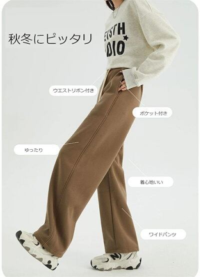 裏起毛 ワイドパンツ ガウチョパンツ パンツ レディース 冬 ワイド カーブパンツ スウェット ウエストゴム ゆったり 体型カバー ジャージ 厚手 裏起毛パンツ 暖かい スウェットパンツ 裏