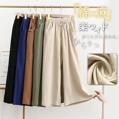 新作登場 ワイドパンツ レディース チノパン リネン バギーパンツ ガウチョパンツ ズボン ロング ワイドパンツルック 綿麻 大きいサイズ リラックス 美脚
