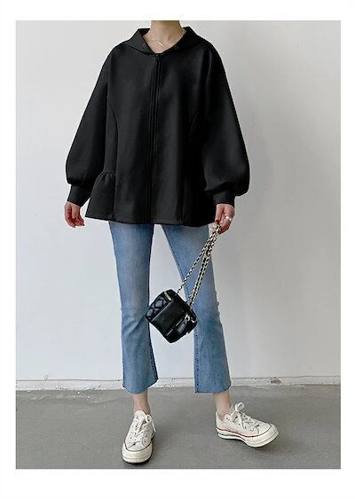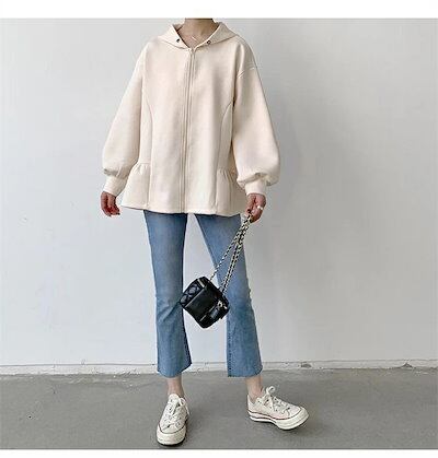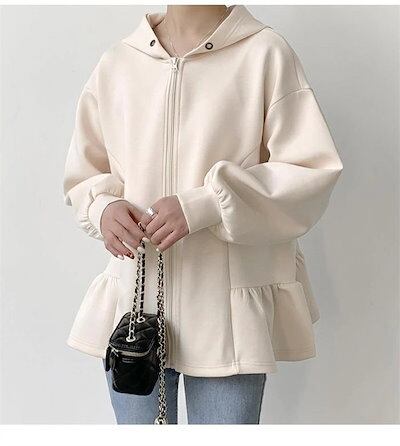 アウター 秋 フードジャケット レディース 前開き パーカー トップス フード付き 暖い 軽量 フレア 春 秋冬 大きいサイズ ブルゾン ゆったり 体型カバー 無地 防風 シンプル カジュアル 通勤