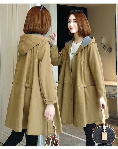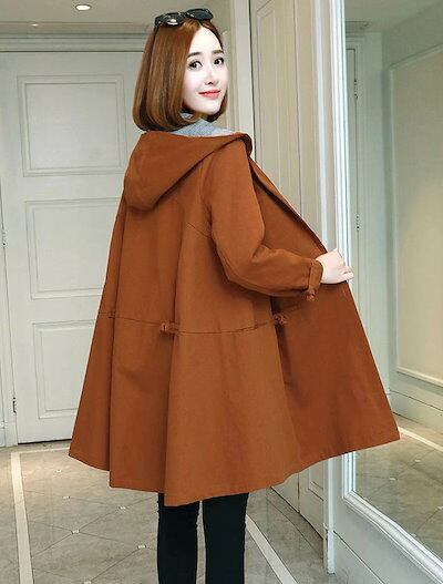 マウンテンパーカー レディース トレンチコート スプリングコート フード付き アウター ジャケット 春コーデ 大きいサイズ コート ロングコート ロング丈 フレア ジャンパー 無地 体型カバー シンプ