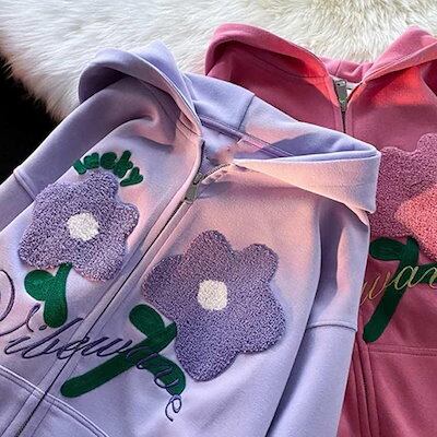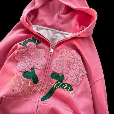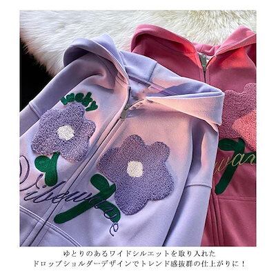超目玉新品 薄手 花柄 刺繍 春 レディース パーカー パーカー アウター 秋物 羽織り オーバーサイズ ライトアウター 秋 スウェット 刺繍 大人 フーディー