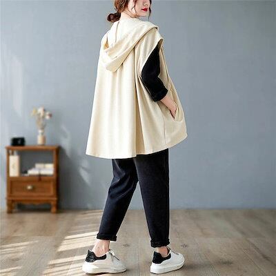ベスト レディース 春夏 秋 前開き パーカー トップス フード付き ジップアップ パーカーベスト スウェット 前後差 アシンメトリー 不規則裾 ワッフル柄 ゆったり ポケット ノースリーブ カットソ