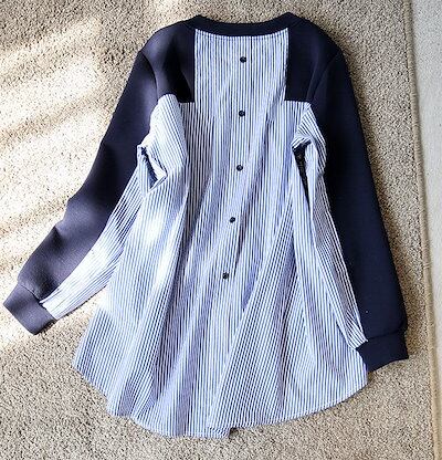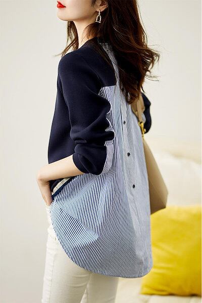 ドッキング スウェット レディース おしゃれ ストライプ シャツ レディース 異素材 春 秋 トレーナー 春 秋冬 きれいめ プルオーバー クルーネック トップス ラウンドネック パーカー 配色 リラ