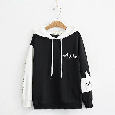 パーカー 長袖 tシャツ パーカーtシャツ フーディー カットソー レディース スウェット 秋 冬 春 tシャツ レディース 可愛い 大きいサイズ フード付き バイカラー 配色 ゆったり トップス プ