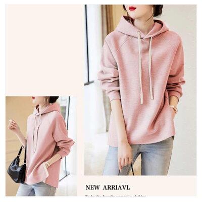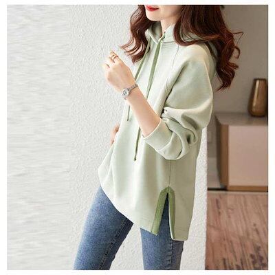 品質いいな新品 プルオーバー 英字 トレーナー レディース オーバーサイズ パーカー サイドスリット トップス M 春 ロゴ 黒 綿 フード付き 白 ベージュ