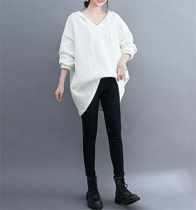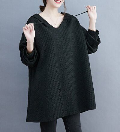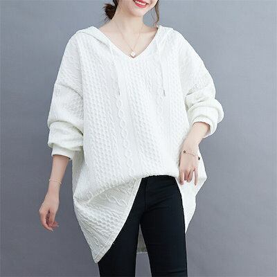 パーカー レディース チュニック 春 秋 冬 プルオーバーパーカー フード付き 帽子 Vネック カジュアル ビックシルエットパーカー トップス 通勤 通学 長袖 無地 ブラック ホワイト グレー 大