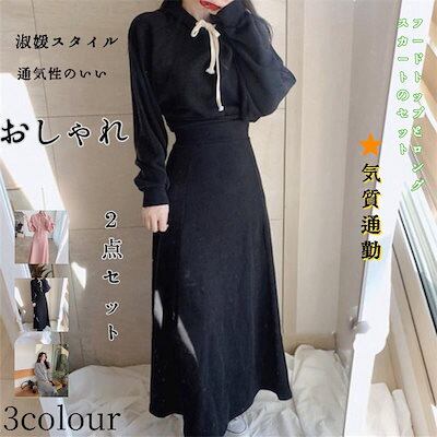即納!スウェット パーカー スウェット+ロングスカート トレーナー ジャケット 春服 レディース スレッドパーカー スカート 二点セット パーカー セットアップ