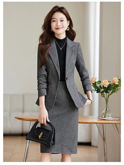 セットアップ スーツ レディース パンツスーツ スカートスーツ フォーマル セレモニー ビジネススーツ 大きいサイズ テーラードジャケット&ワイドパンツ タイトスカート ツイード 2点セ