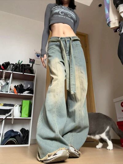 大きいサイズ デニムジーンズ アメリカ レトロ ワイドパンツ ジーパン レディー ストレートパンツ ゆったり ロングパンツ