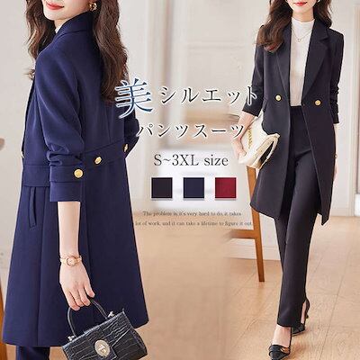 セットアップ スーツ レディース フォーマル 春秋 パンツスーツ スーツジャケット フォーマル 洗える セレモニー ビジネススーツ ロングテーラードジャケット ワイドパンツ 2点セット 大きいサイズ