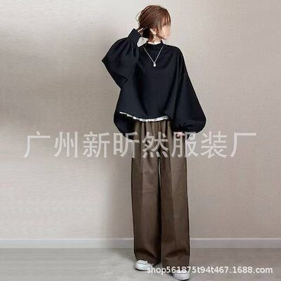 【日系人気商品!】【急速出荷】2025初春新品 大きめサイズ カジュアル セット スウエット+ワイドパンツ セットアップ 体型カバー トップス 二点セット レディースファッション メガ割商品