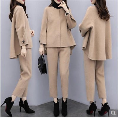 新品更新 セットアップ レディース 秋冬 40代 カジュアル 大きいサイズ ニット ニットセーター プルオーバー ワイドパンツ ニットセットアップ 長袖