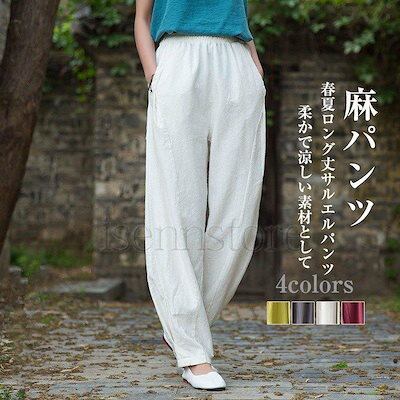 新品入荷 リネン 綿麻 ワイドパンツ レディース 春夏 ゆったり ルーズ 大きいサイズ サルエルパンツ カジュアル 無地 ナチュラル イージーパンツ リラックス