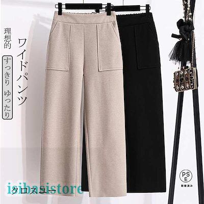 ワイドパンツ レディース 秋冬 ガウチョパンツ ズボン ロング丈 秋 ゆったり パンツ 無地 ウエストゴム 大きいサイズ 体型カバー カジュアル ボトムス 肌触り良