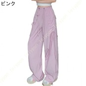 カーゴパンツ レディース ワイドパンツ カジュアル オシャレ 薄手 無地 ズボン ゆったり 大きいサイズ カーゴパンツ ワイドパンツ ボトムス ワイド