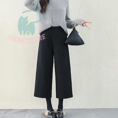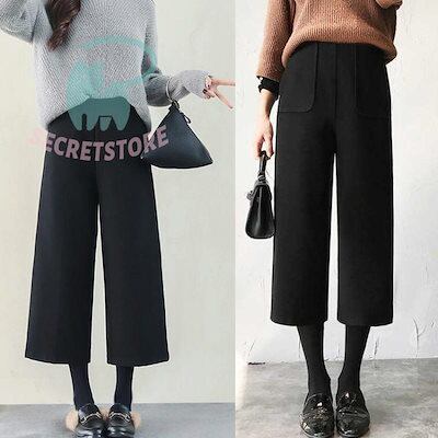 新品(タイムセール)ワイドパンツ パンツ ガウチョパンツ ボ レディース ラシャ 大きいサイズ スカンツ カジュアル ポケット付き 体型カバー 着痩せ 無地 秋冬 コーデ