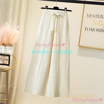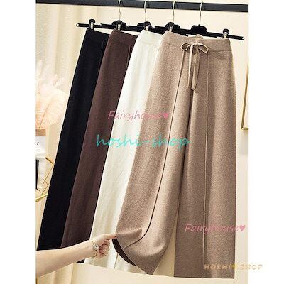 早く新品を選んで!ニットワイドパンツ レディース 秋冬 ロング丈 セーター ストレートズボン 黒ボトムス 大きいサイズ カジュアル韓国風 おしゃれ 通勤 体型カバー40代50代30代