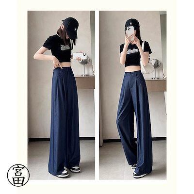 冬の暖かさ!ワイドパンツ デニム レディース 春 秋 夏 ひんやり ロング丈 ワイドパンツ パンツ きれいめ 可愛い 無地 あったか 柔らかい 大きいサイズ 体型カバー おしゃれ