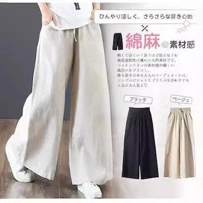 おしゃれヨガウエア ワイドパンツ 百掛け 綿麻 大きいサイズ UVカット ワイドパンツ 紫外線対策 ゆったり 体型カバー フレアパンツ 韓国 ストレート ズボン レディース ファッション