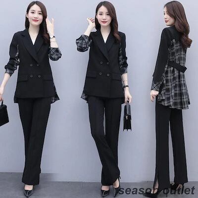 セットアップ レディース 40代 新作 長袖スーツジャケットチェック柄 ワイドパンツ 2点セット 通勤 フォーマル カジュアル オシャレ 上品 大きいサイズ