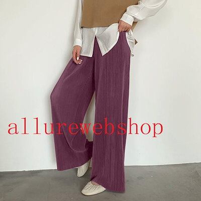 新は通常通り出荷プリーツパンツ セルフカット 大 レディース 9色 ワイドパンツ シフォン 大きいサイズ 裾カットK ウエストゴム ボトムス