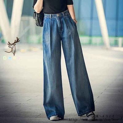 大きいサイズのの韓国版の新型ワイドパンツ レディース ワイドデニム デニムパンツ ワイドパンツ レディース ジーンズ ガウチョパ